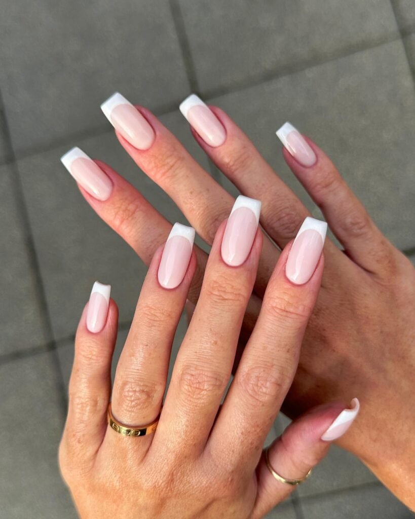 There’s something powerful about a sharp, square French tip—crisp, confident, and timeless. The milky base keeps it soft and bridal, while the defined white tips bring that chic, editorial touch.