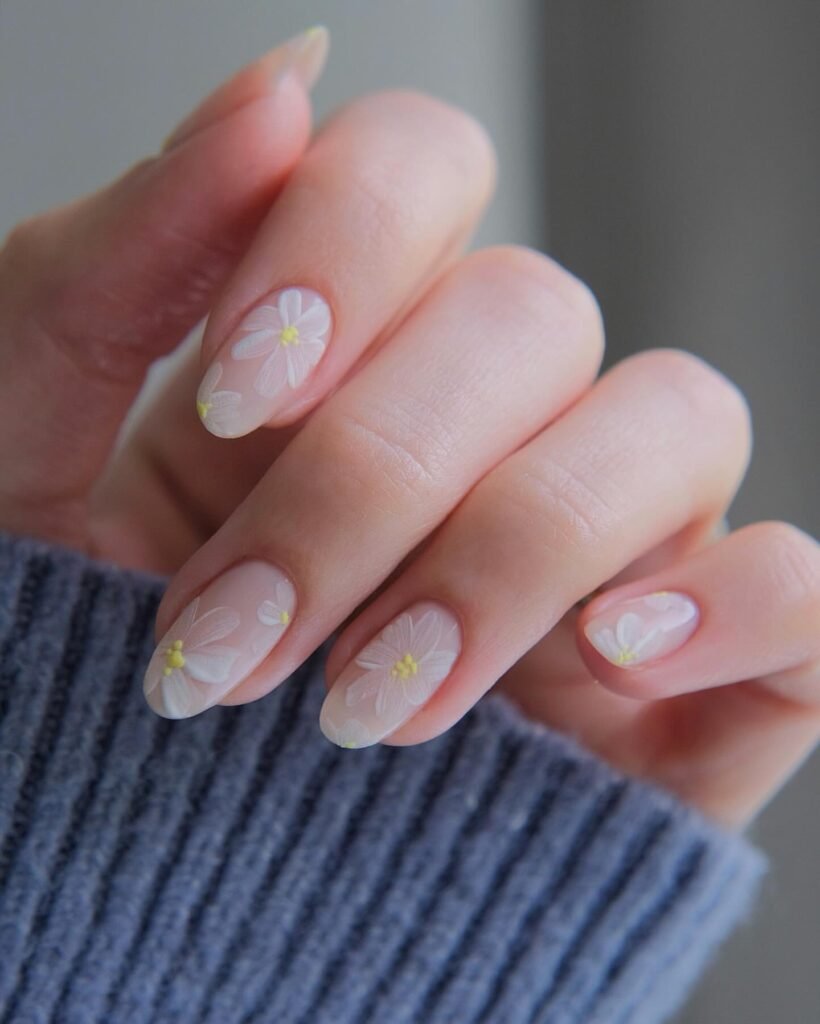 These daisy-soft florals feel like they were picked straight from a spring garden and placed gently on your fingertips. The translucent base keeps everything airy and romantic.
