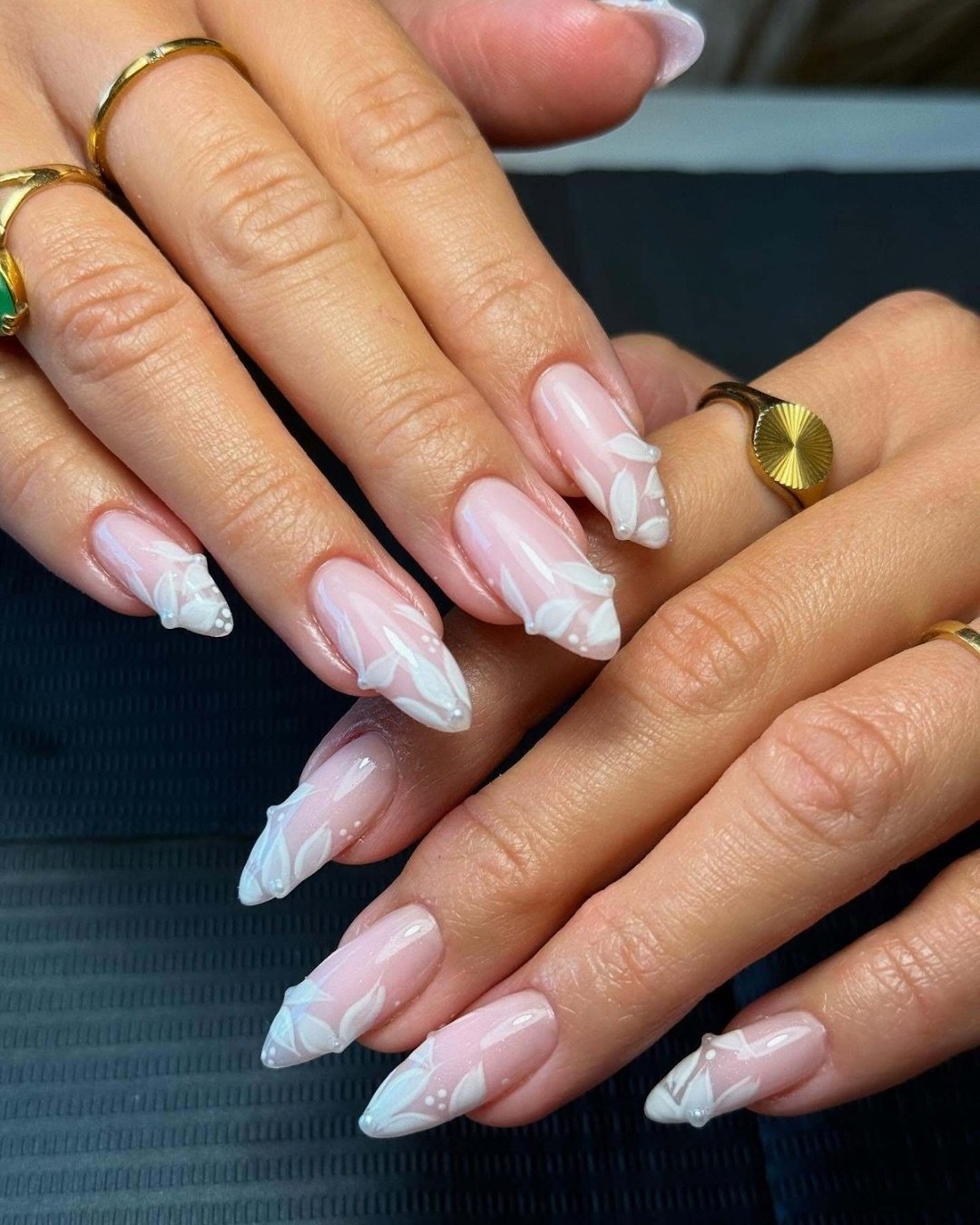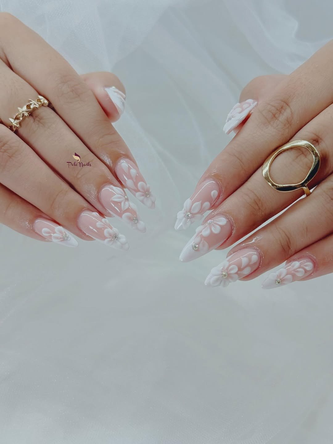 What makes it stand out is how seamlessly the white petals melt into the pink base. It’s sculptural, but wearable. Classy, but cool. Whether you’re walking down the aisle or down the street to brunch, these nails are a total power move.
