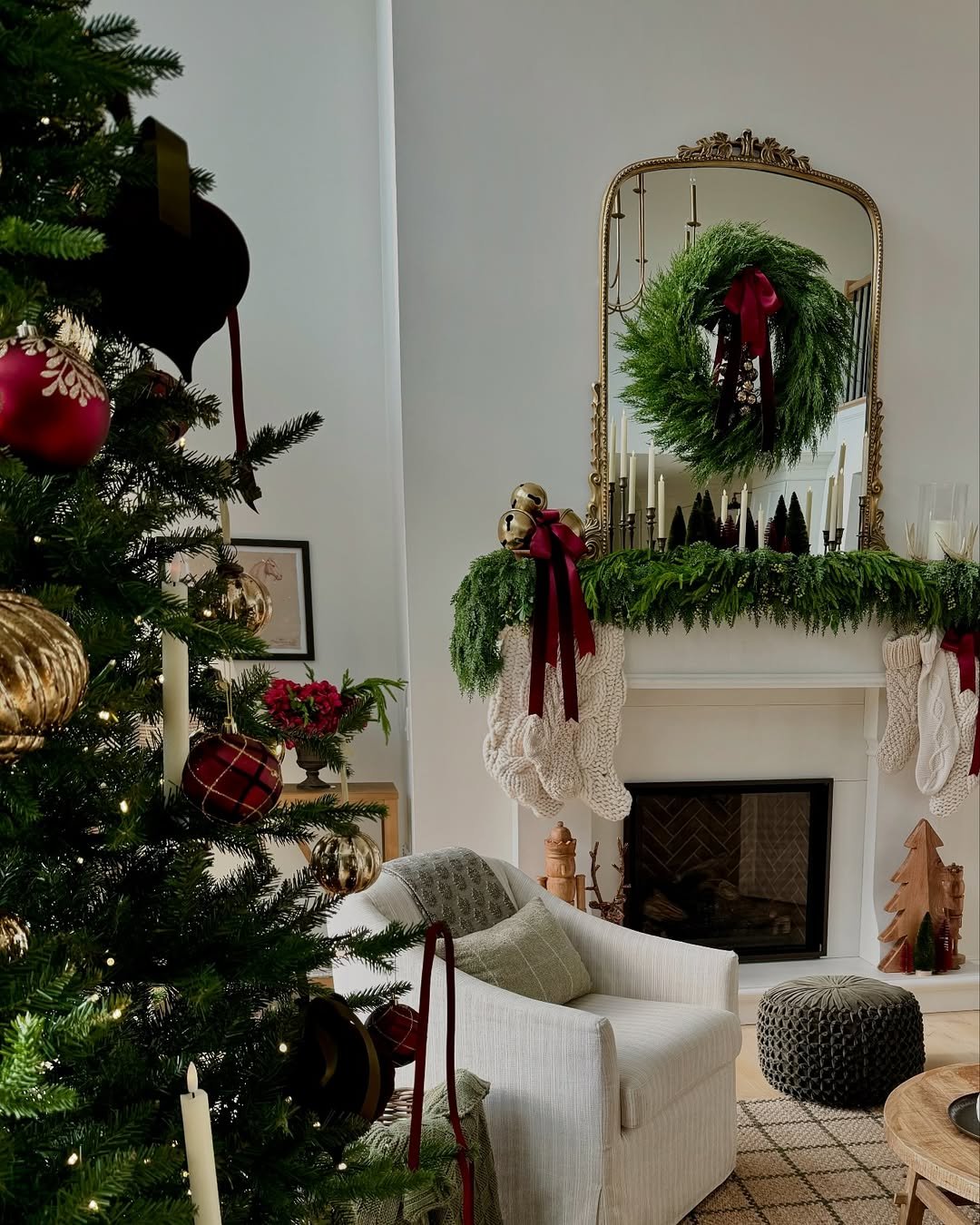This room wraps you in that soft, nostalgic kind of holiday glow. White walls keep everything light, while the greenery adds depth in the most effortless way.