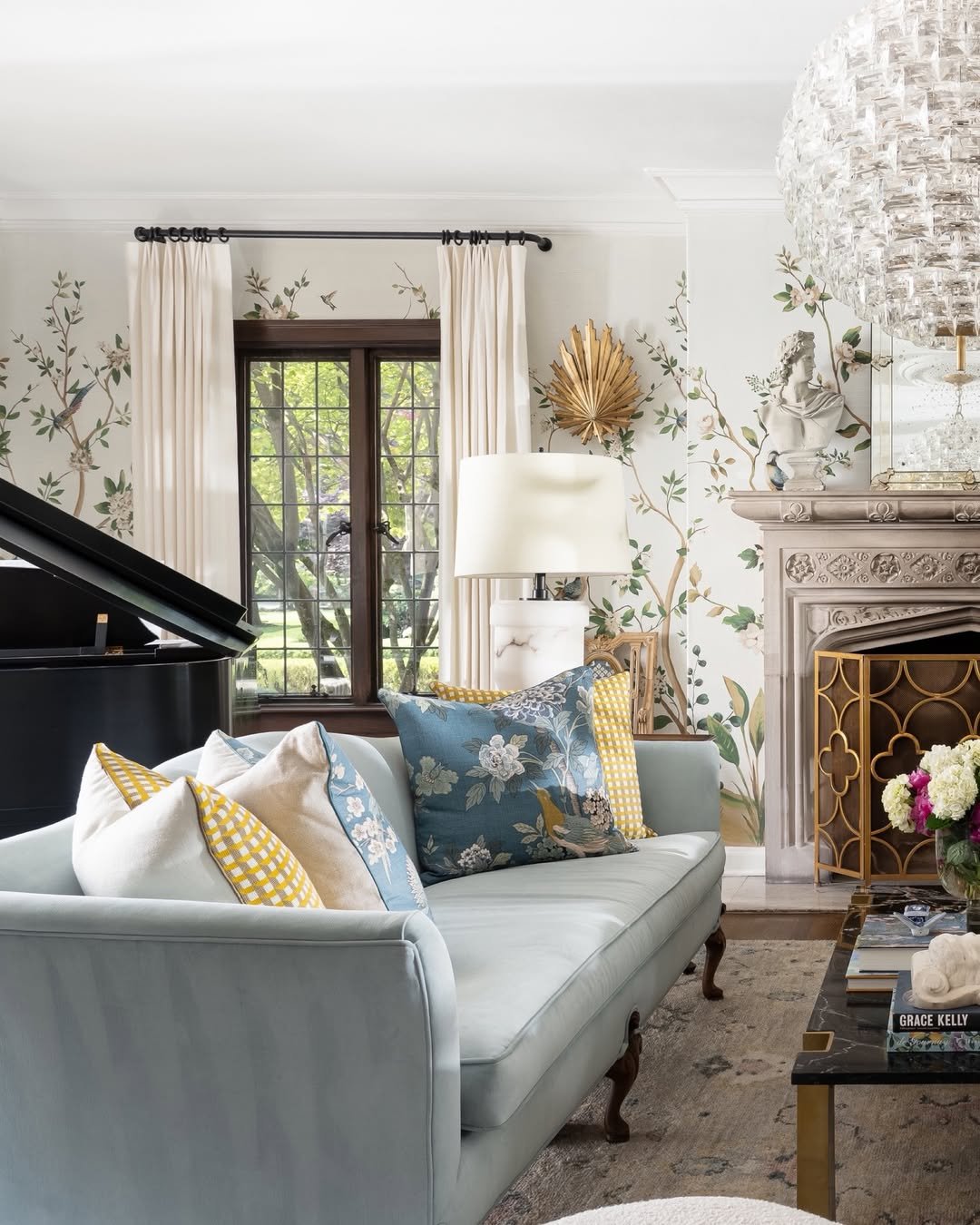 This room leans into tradition in the most beautiful way. Layered patterns, tailored drapery, and classic furnishings all come together in a way that feels rich but never overwhelming.