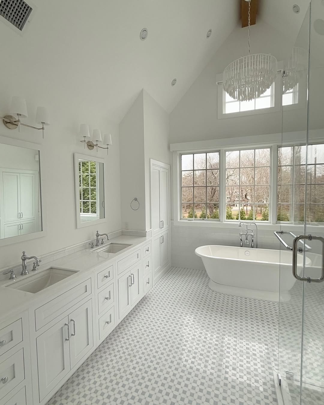 This space feels timeless. The double vanity, soft lighting, and wide windows create that open, airy atmosphere that never goes out of style.