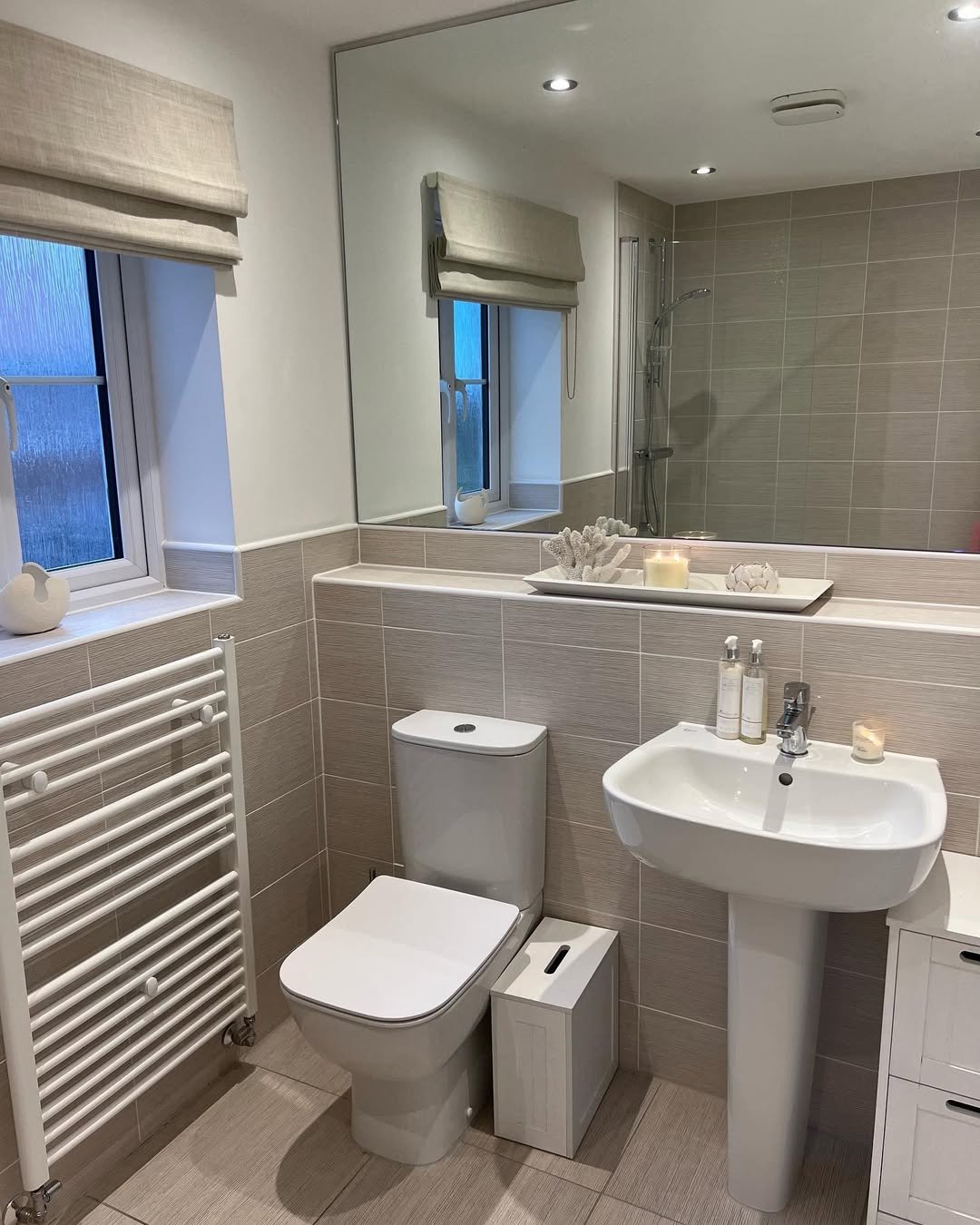 Simple, practical, and quietly stylish. The neutral tiles, clean fixtures, and small decor accents make this space feel instantly livable.