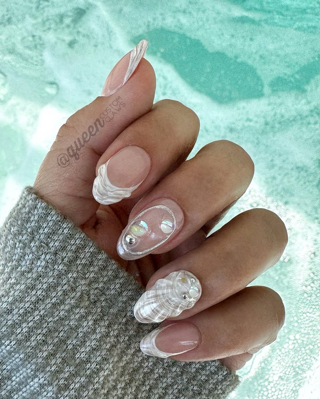 This set feels like it was pulled straight from the ocean. 3D shell textures, pearly accents, and translucent details create a soft, beachy fantasy moment.