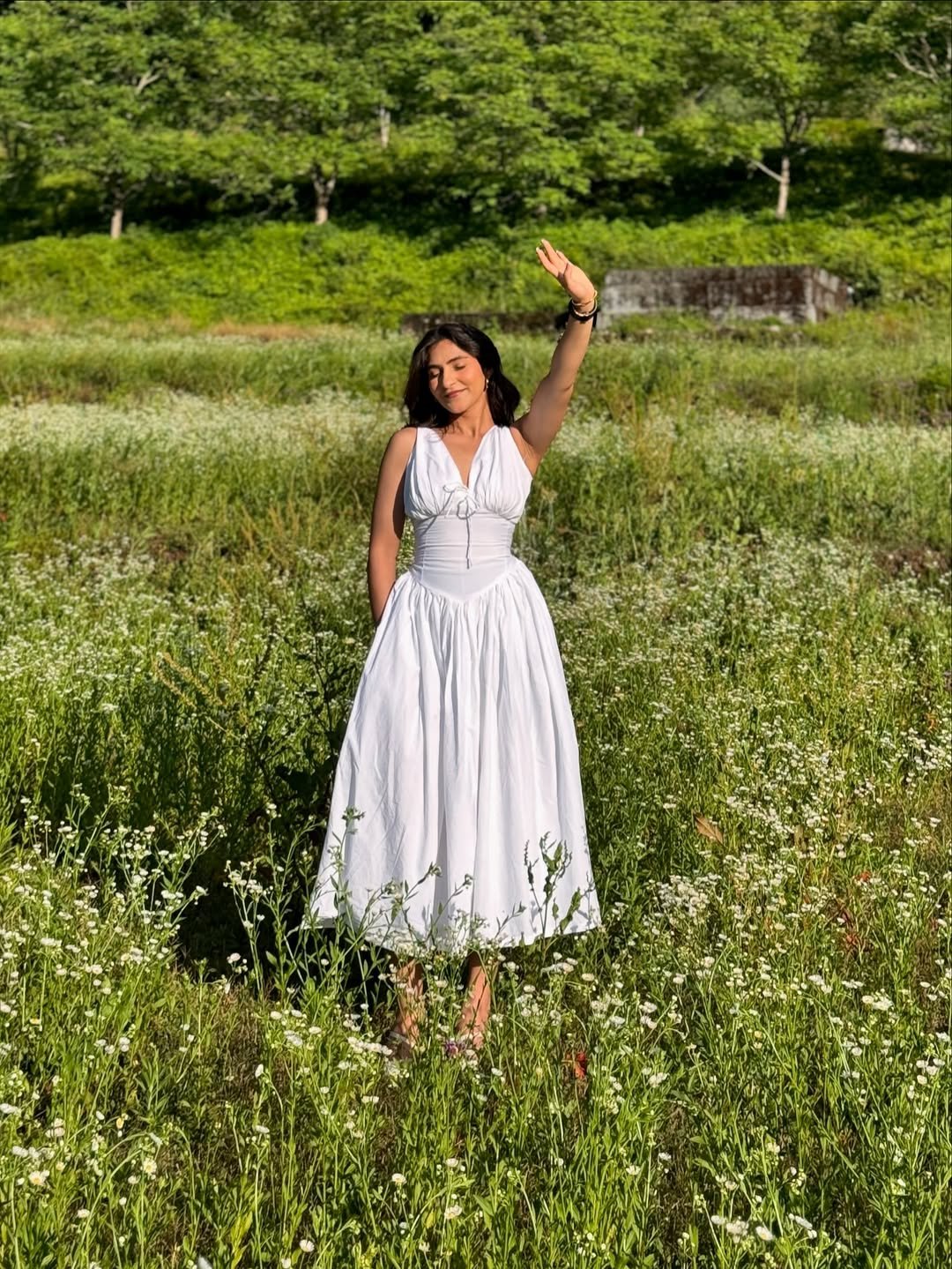 There’s something about a simple white dress in a field of green that just feels joyful. It’s light, feminine, and exactly the kind of outfit that makes spring days feel a little brighter.