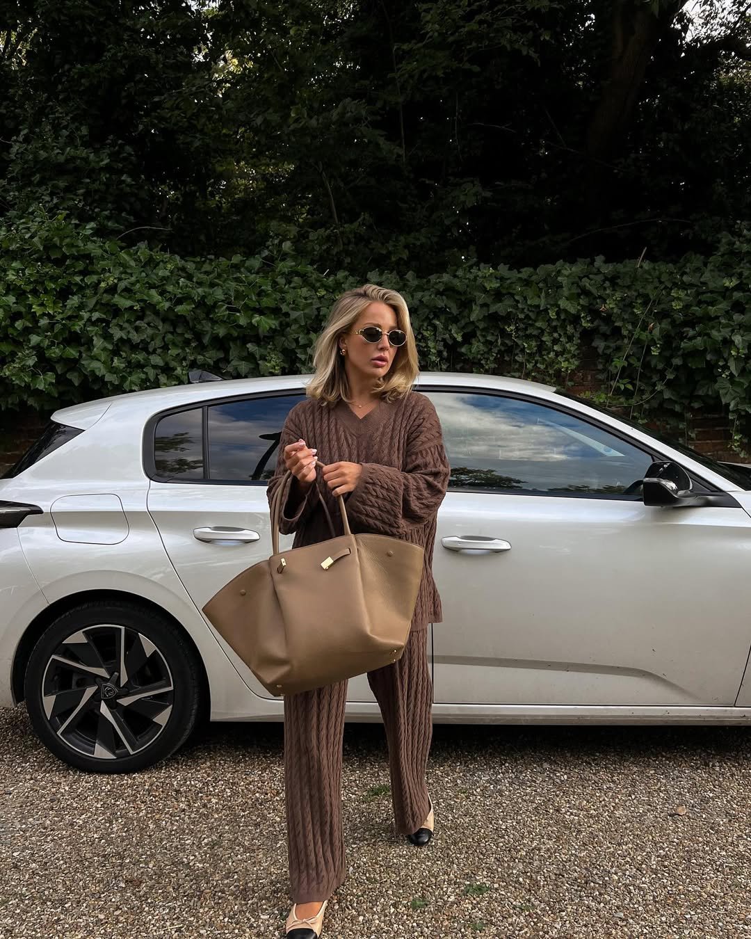 This look by @allchloerose is peak winter airport comfort with a fashionable twist. Soft knits, relaxed fits, and neutral tones make it feel warm and wearable, while the accessories keep it elevated.