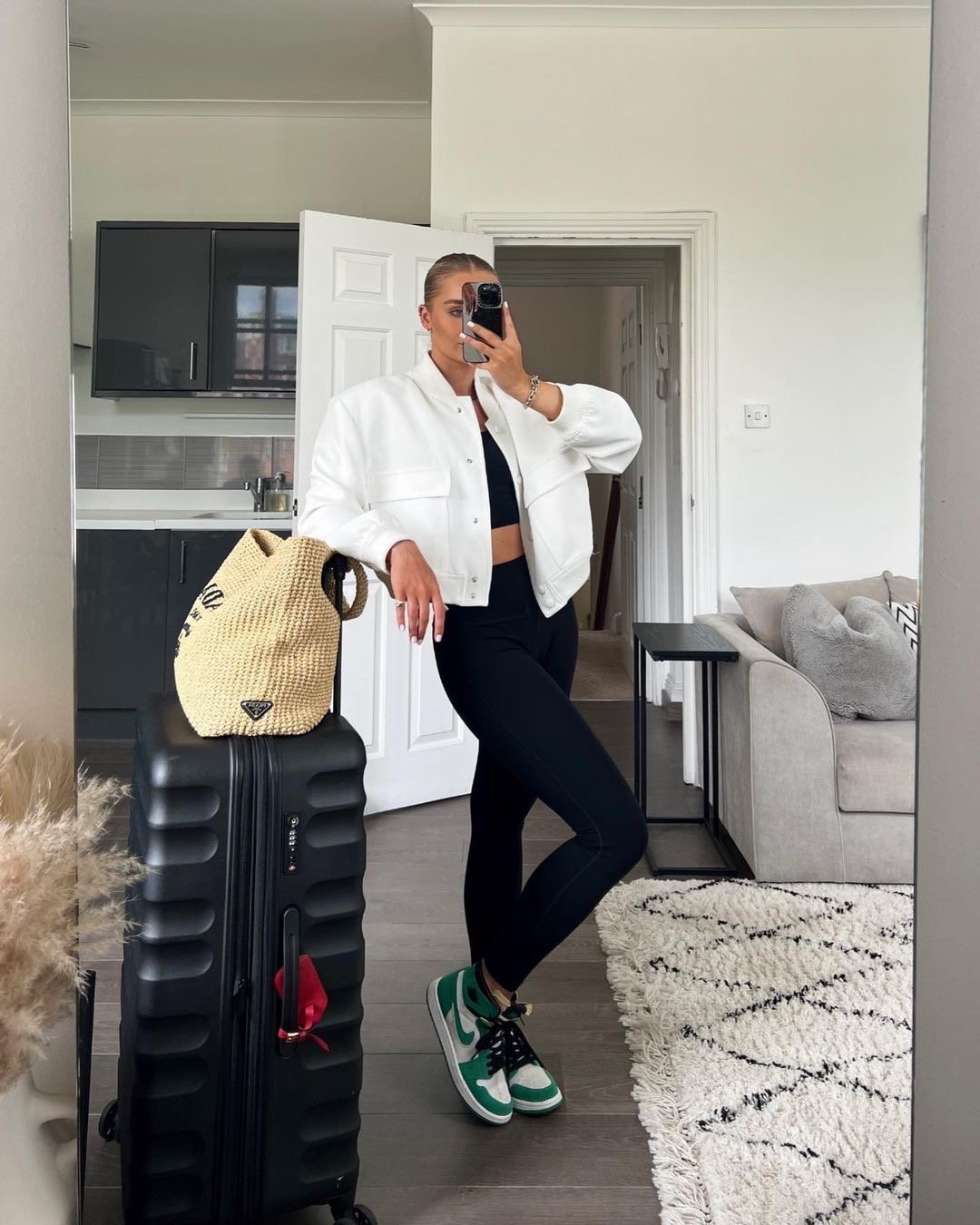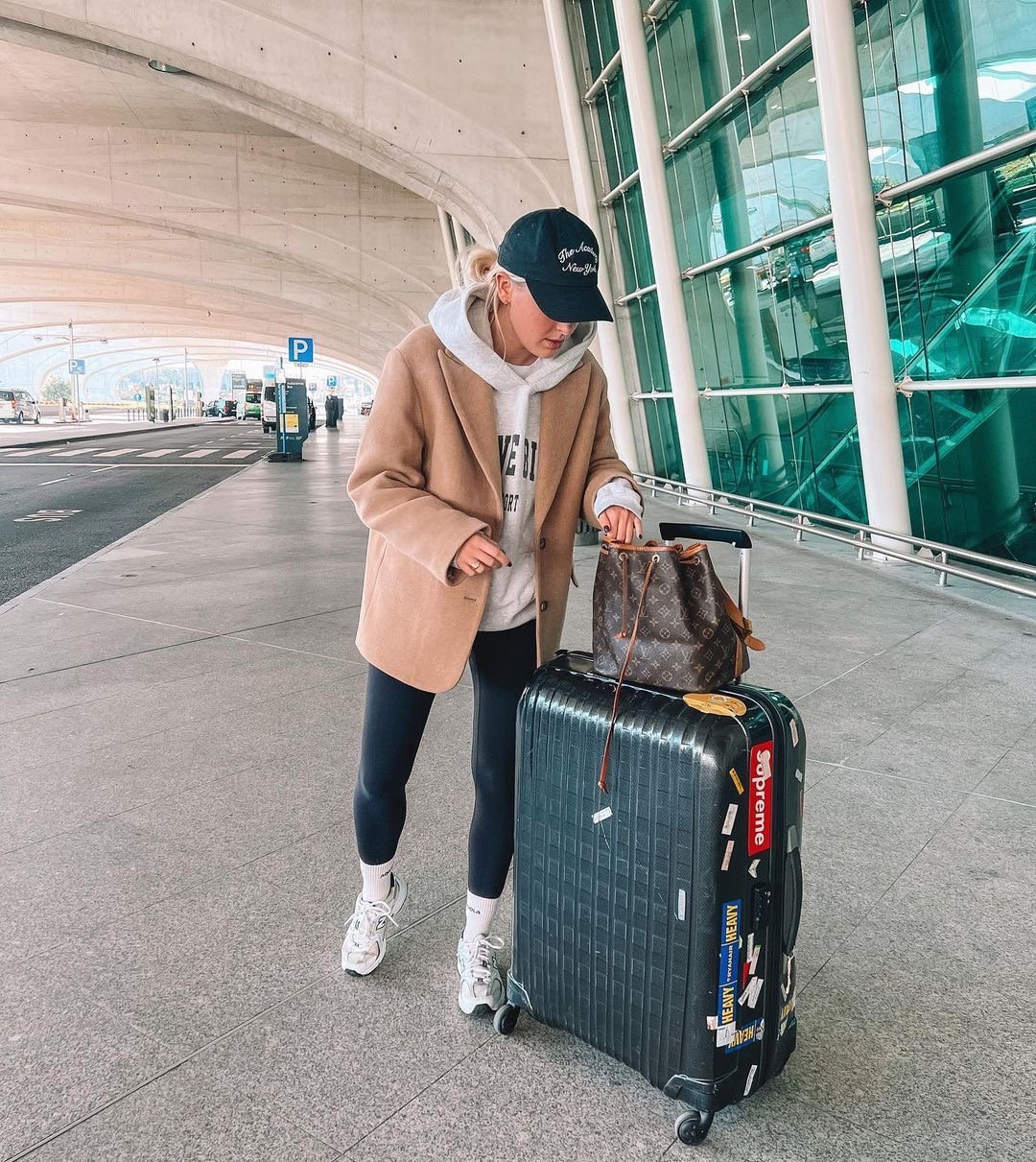 @emmahill’s airport style leans sporty, but it’s done in a very intentional way. Comfortable pieces are styled cleanly, making the whole look feel modern and functional.