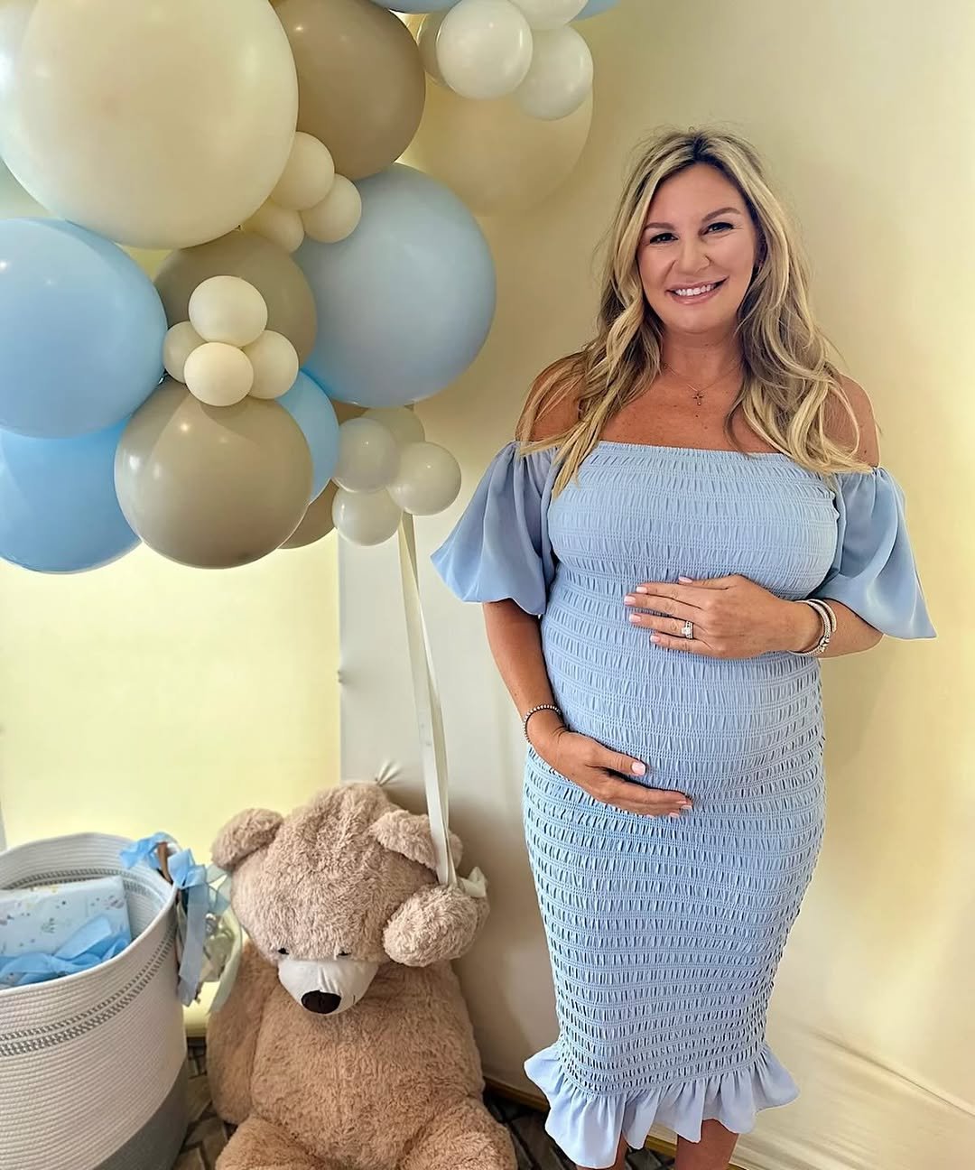 It’s the kind of dress you wear when celebrating the bump with your closest people — comfortable enough for hours of mingling, yet pretty enough to feel special in every photo.