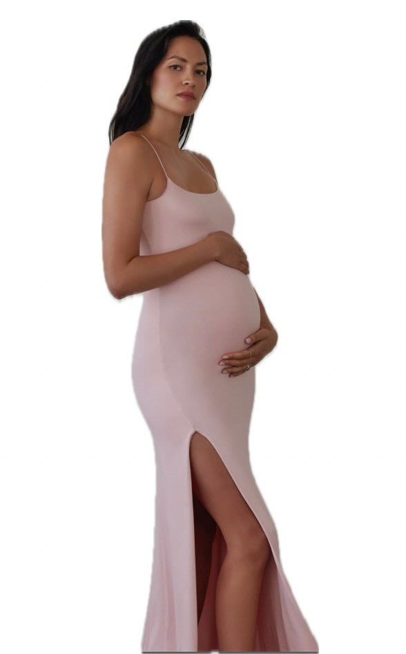 Soft, sculptural, and almost cloud-like, this blush slip dress celebrates the bump with such quiet grace. The simple spaghetti straps and silky drape make it feel dreamy without being fussy — a winter maternity go-to if you love a clean, minimalist vibe.