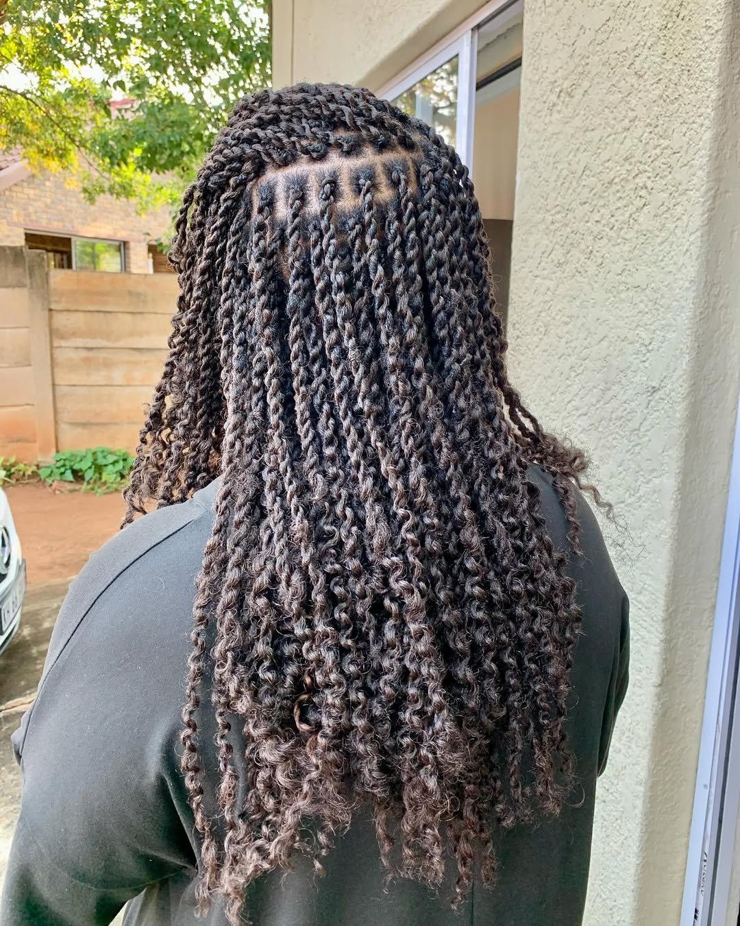 These rope twists are full of structure and dimension — a protective winter look that still feels stylish and beautifully detailed. The clean parting gives the whole style a polished finish while the curls at the ends add softness.