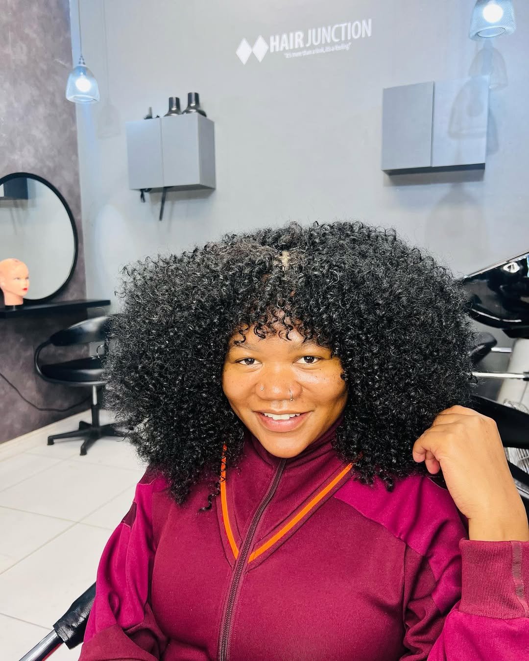 These curls are pure joy — full, springy, and radiating confidence. The shape frames the face beautifully, giving that bold winter texture moment that doesn’t need anything extra to shine.