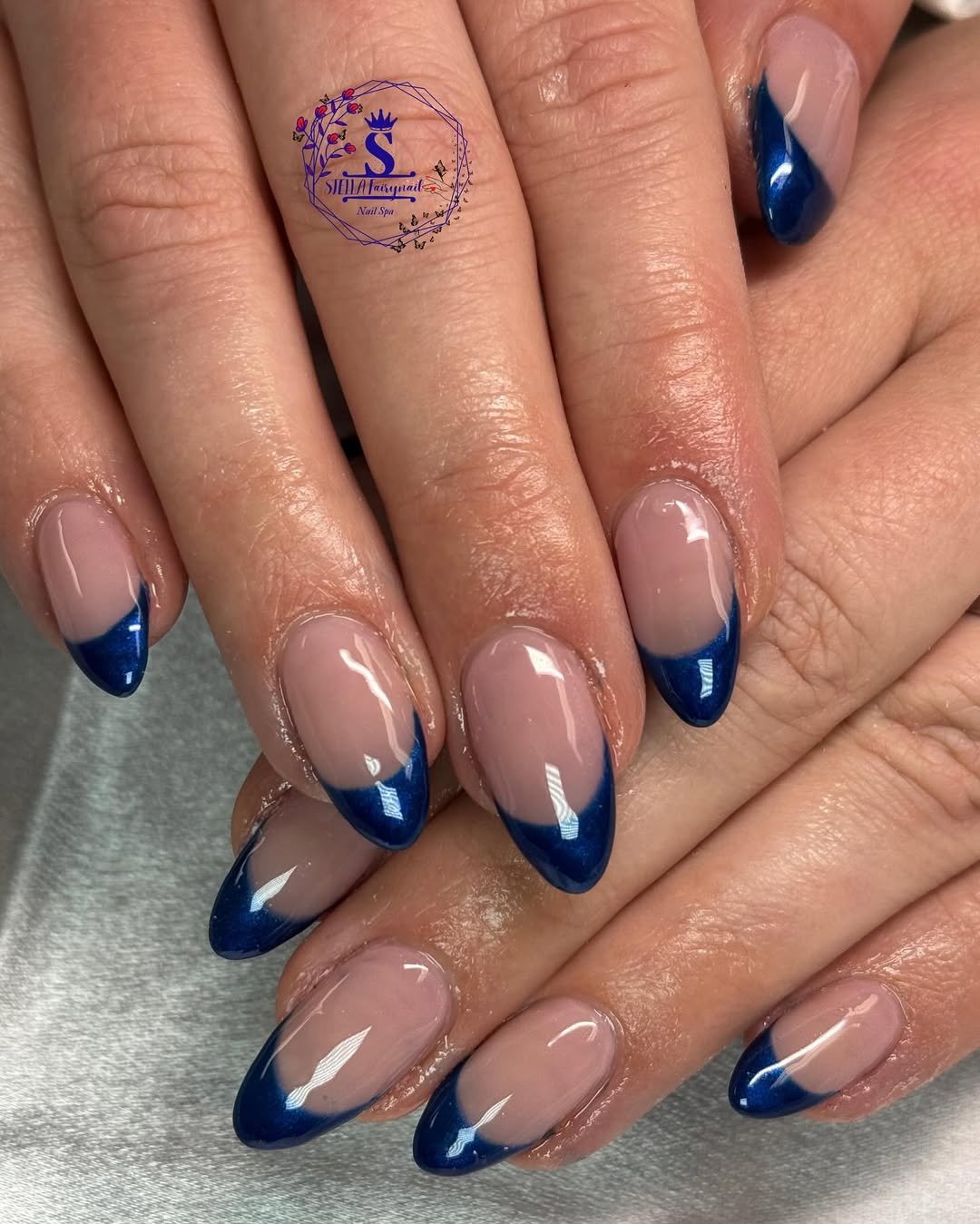 Classic meets cool in this navy French tip moment. The almond shape and glassy shine keep it looking polished, while the deep sapphire hue adds just enough intrigue to make it feel elevated.