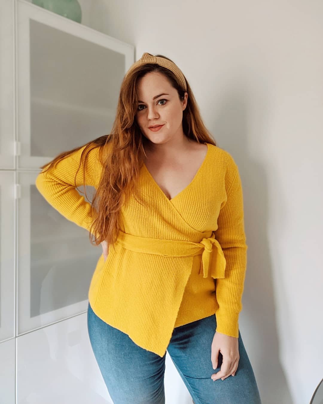 A pop of marigold feels like its own kind of winter warmth. This wrap sweater hits that perfect balance of cozy and flattering, cinching the waist just enough while still feeling slouchy and soft.