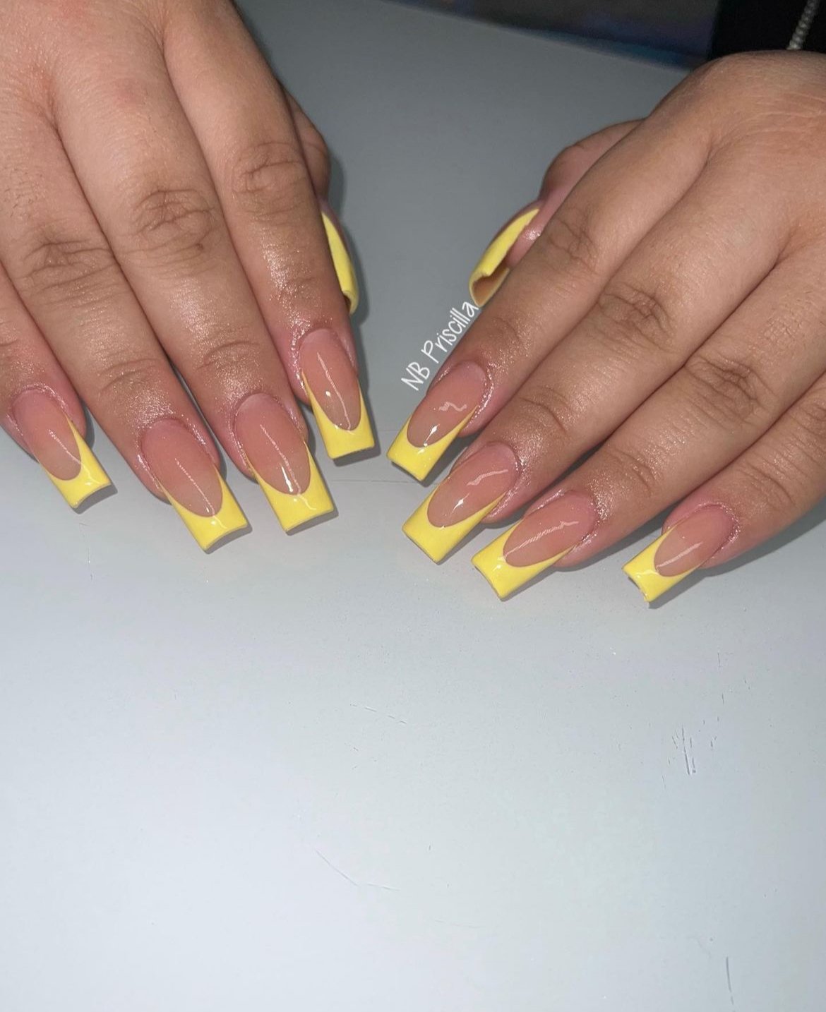 These nails are the perfect mix of elegance and brightness. The sleek yellow French tips bring that fresh citrus energy while the nude base keeps the whole look clean and refined.
